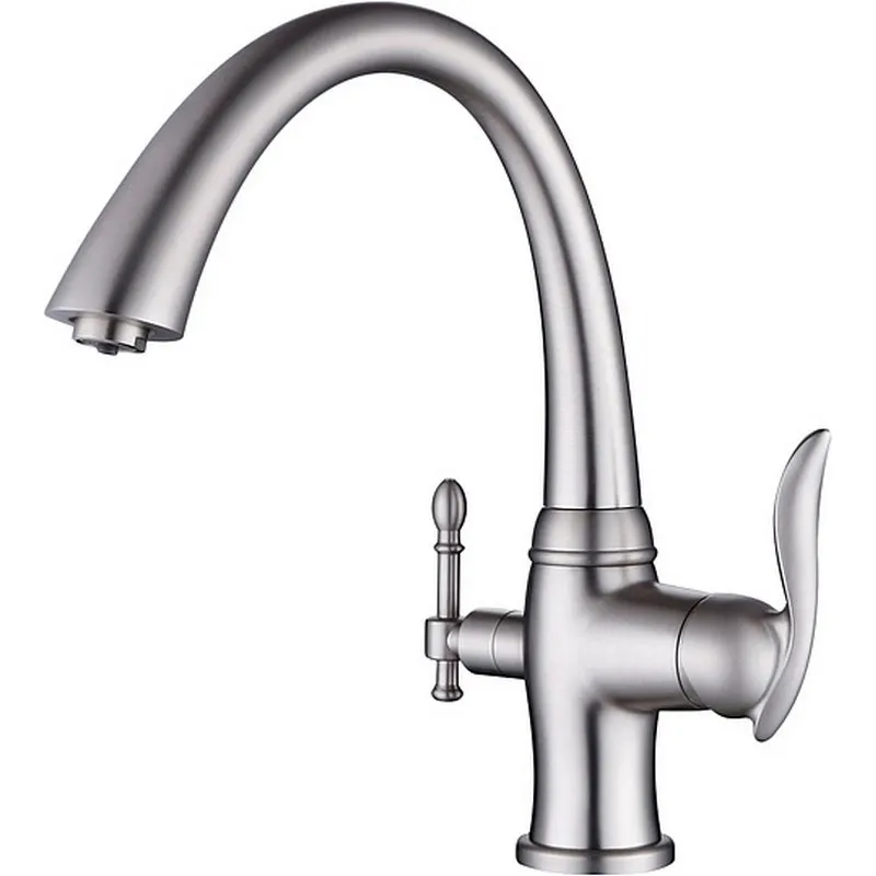 Смеситель для кухни Zorg Sanitary ZR 340 YF SATINХарактеристики: Материал: Латунь Цвет: СатинУправление: РычажноеСтандарт подводки: 1/2" В состав комплекта входит: Смеситель Аэратор Крепления Гибкая подводка Инструкция