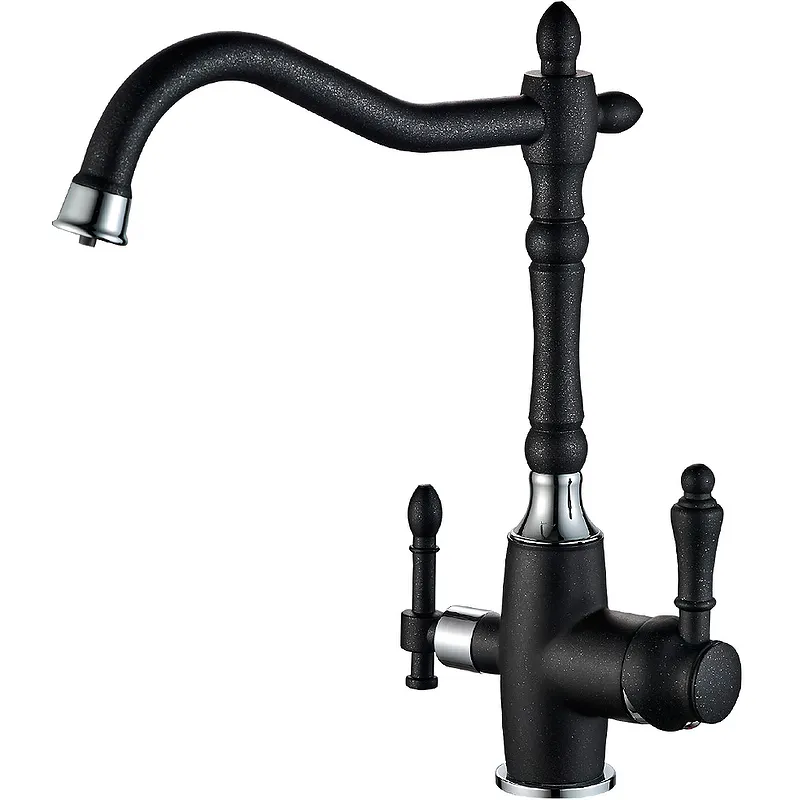 Смеситель для кухни ZorG Steel Hammer SH 812 BLACK CR с краном питьевой воды.Характеристики: Цвет: черный матовый, хром. Покрытие: гранит матовый. Материал: латунь. Механизм: керамический картридж. Управление: однорычажное. Излив: поворотный, с каналом для питьевой воды. Стандарт подводки: 1/2. Тип подводки: гибкая. Монтаж: на мойку, на столешницу. Отверстий для монтажа: 1. Аэратор. Универсальное цанговое подключение к фильтру. В комплекте поставки: Смеситель. Гибкая подводка 45 см. Комплект креплений. Переходник-цанга для подключения фильтра.