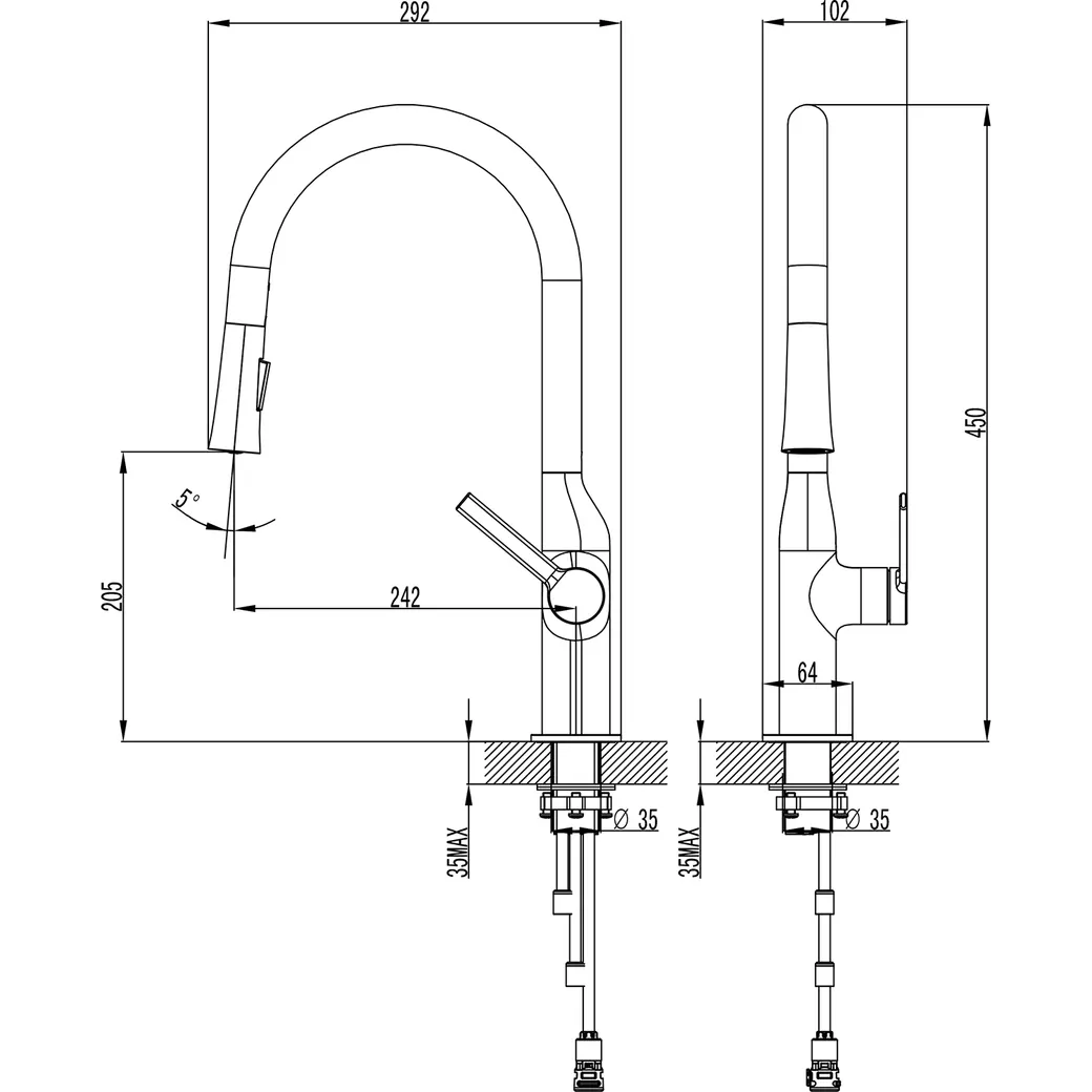 Смеситель для кухонной мойки Azario VINCENTE выдвижной излив, керамический картридж, графит арт-AZ-VPV569064AJ