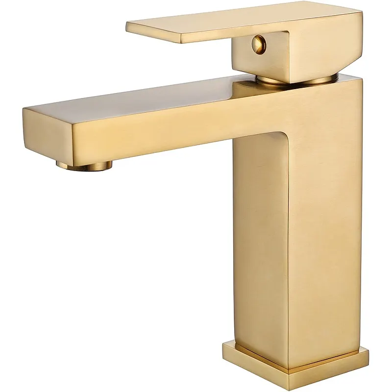 Смеситель для раковины Abber Daheim AF8210G.Характеристики: Цвет: золото матовое. Материал: латунь. Управление: рычажное. Излив: фиксированный. Монтаж: на раковину, на 1 отверстие. В комплекте поставки: смеситель для раковины.