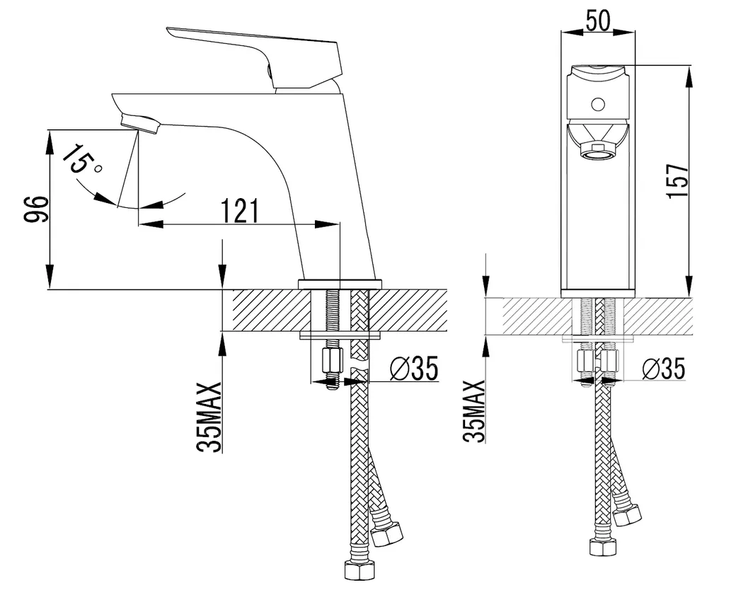 Смеситель для раковины AZARIO AVILLA керамический картридж, хром арт-AZ-WKG168044C