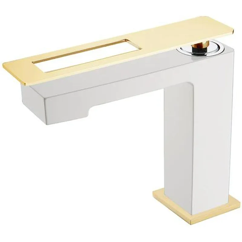 Смеситель для раковины Boheme Q 141-WG.Характеристики: Цвет: белый, золото. Материал: латунь. Управление: однорычажное. Механизм: керамический картридж. Излив: фиксированный. Стандарт подводки: G 1/2. Тип подводки: гибкая. Функция экономии расхода воды. Аэратор с функцией легкого очищения. Тип крепления: гайка. Монтаж: на раковину. В комплекте поставки: Смеситель для раковины. Гибкая подводка. Комплект креплений.
