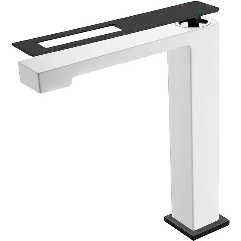 Смеситель для раковины Boheme Q 142-WB.Характеристики: Цвет: белый, черный. Материал: латунь. Управление: однорычажное. Механизм: керамический картридж. Излив: фиксированный. Стандарт подводки: G 1/2. Тип подводки: гибкая. Функция экономии расхода воды. Аэратор с функцией легкого очищения. Тип крепления: гайка. Монтаж: на раковину/на столешницу. В комплекте поставки: Смеситель для раковины. Гибкая подводка. Комплект креплений.