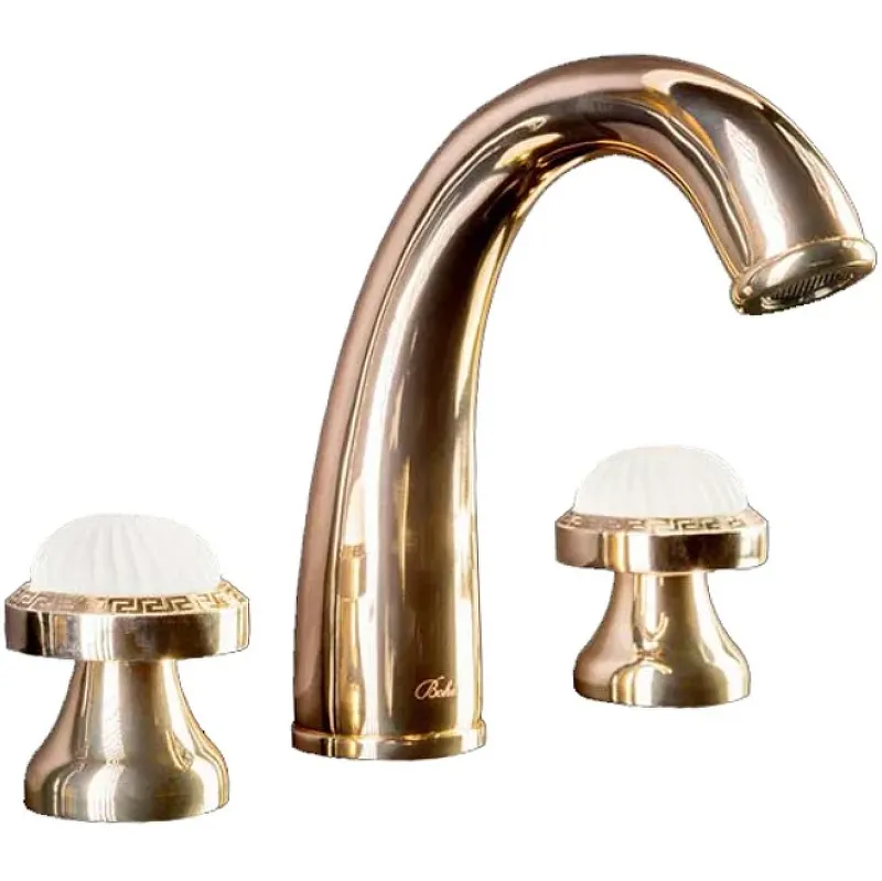 Смеситель для раковины Boheme Satine 297-ST.Характеристики: Цвет: золото. Материал: латунь. Декор ручек: хрусталь. Управление: вентильное. Механизм: керамические кран-буксы. Излив: фиксированный. Аэратор. Максимальный расход воды: 5 л/мин. Количество монтажных отверстий: 3. Диаметр монтажного отверстия: 35 мм. Гибкая подводка 1/2. Вид крепления смесителя: на гайке. Монтаж: на раковину. В комплекте поставки: Смеситель. Гибкая подводка. Набор креплений.