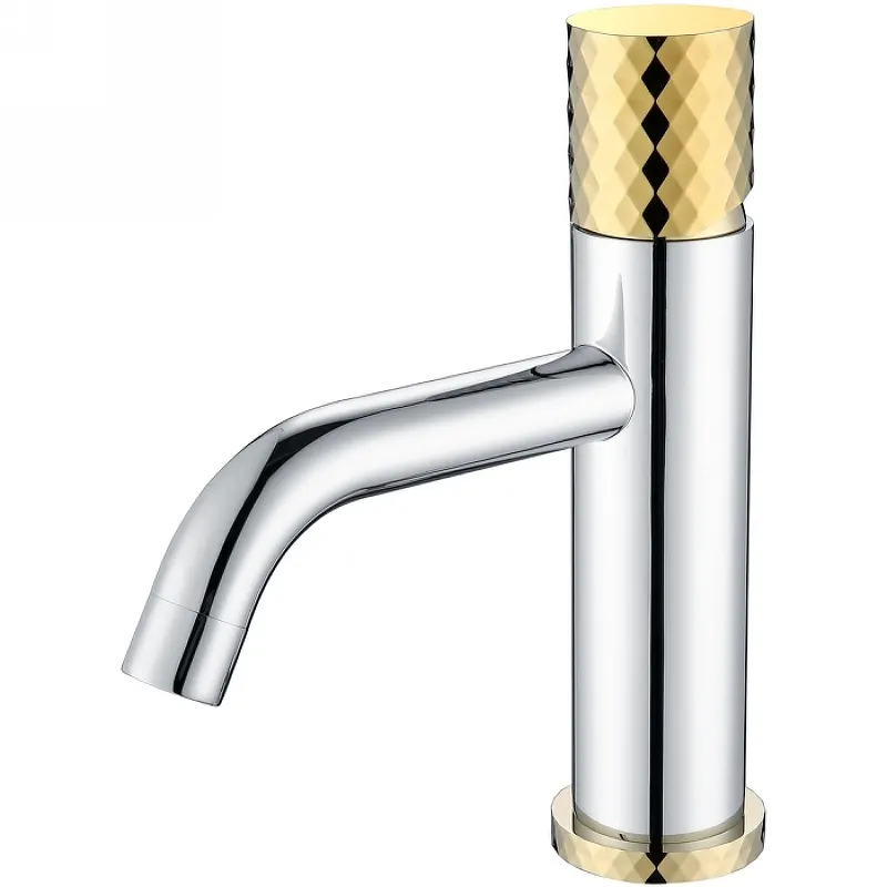 Смеситель для раковины Boheme Stick 121-CRG.Характеристики: Цвет: хром, золото. Материал: латунь. Ручка: Diamond золото. Управление: однорычажное. Механизм: керамический картридж. Излив: фиксированный. Аэратор Mikado. Тип подводки: гибкая. Стандарт подводки: 1/2. Отверстия для монтажа: 1. Монтаж: на раковину. В комплекте поставки: Смеситель для раковины. Гибкая подводка. Комплект креплений.