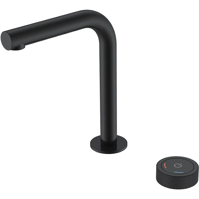 Смеситель для раковины Boheme Tech 158-B.Характеристики: Цвет: черный матовый. Материал: латунь. Тип управления: автоматический. Излив: фиксированный. Аэратор. Стандарт подводки: 1/2. Отверстия для монтажа: 2. Монтаж: на раковину. Пуск воды осуществляется путем нажатия на кнопку, регулировка температуры - путем поворота рукоятки. В комплекте поставки: Смеситель. Гибкая подводка.