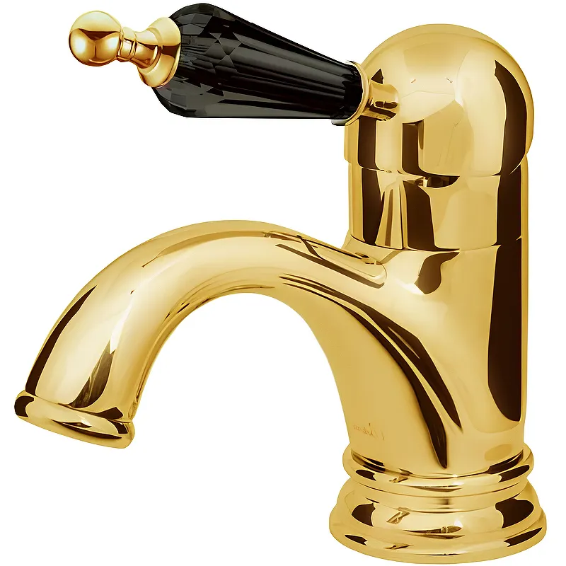 Смеситель для раковины Boheme Tradizionale Nero 251.Характеристики: Цвет: золото. Материал: латунь. Декор ручки: кристалл Swarovski. Управление: однорычажное. Механизм: керамический картридж. Излив: фиксированный. Аэратор. Количество монтажных отверстий: 1. Стандарт подводки: 1/2. Вид крепления смесителя: на гайке. Монтаж: на раковину. В комплекте поставки: Смеситель. Гибкая подводка. Набор креплений.