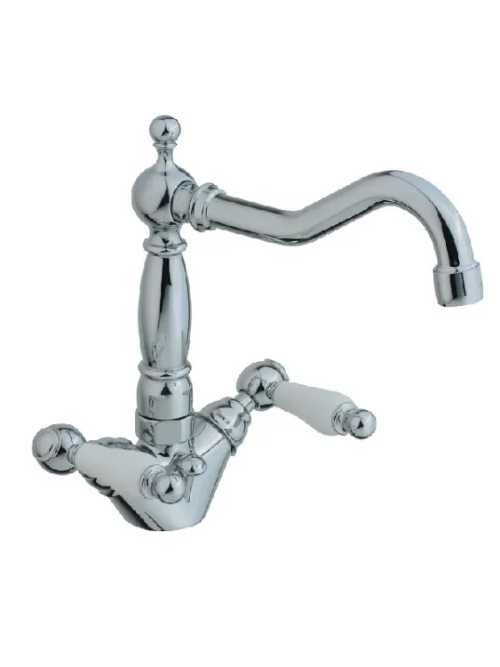 Смеситель для раковины, Cisal, Arcana Toscana, тип открывания воды-двухрычажный, тип установки-на раковину, отверстия для монтажа-1, высота, мм-215, цвет-хром/керамика арт-TS00052121