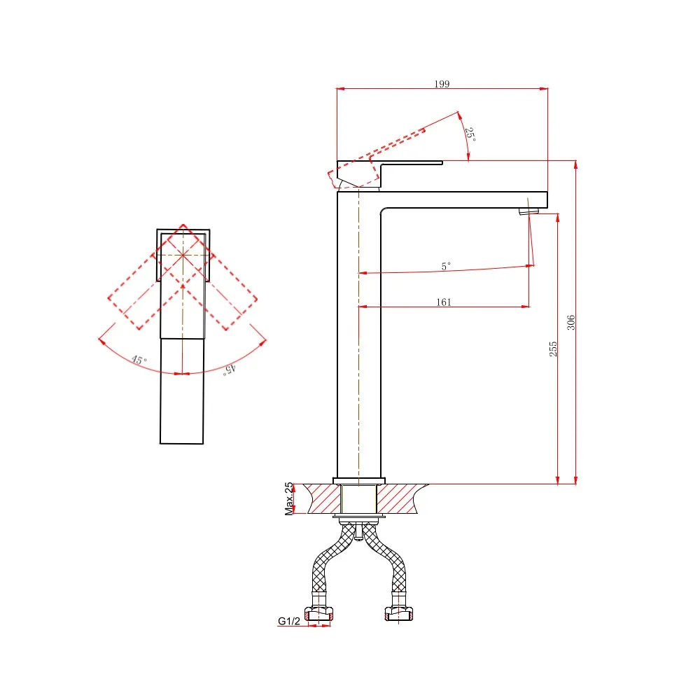 - Гибкая подводка 40 см идёт в комплекте для быстрой установки.
