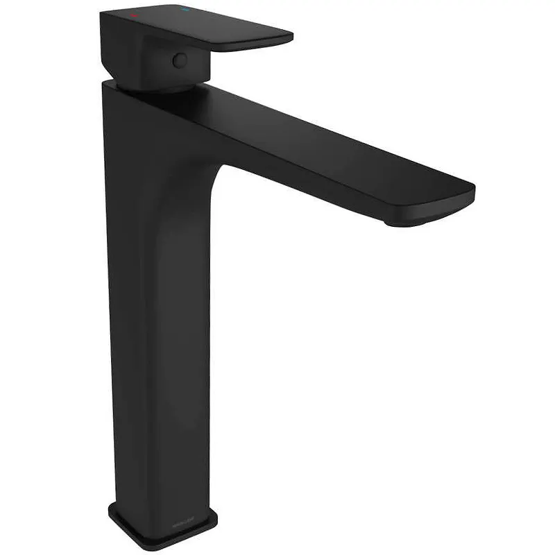 Однорычажный смеситель для раковины Excellent Keria AREX.2002BL высокий.Характеристики: Цвет: черный. Поверхность: матовая. Материал: латунь. Донный клапан сlick-clack без перелива. Излив фиксированный с аэратором Neoperl Slim, который смешивает воду с воздухом, делая ее более мягкой. Керамический картридж Kerox диаметром 25 мм позволяет контролировать напор и температуру воды. Стандарт подключения: G 3/8. Монтаж: на раковину. В комплекте поставки: смеситель. донный клапан.