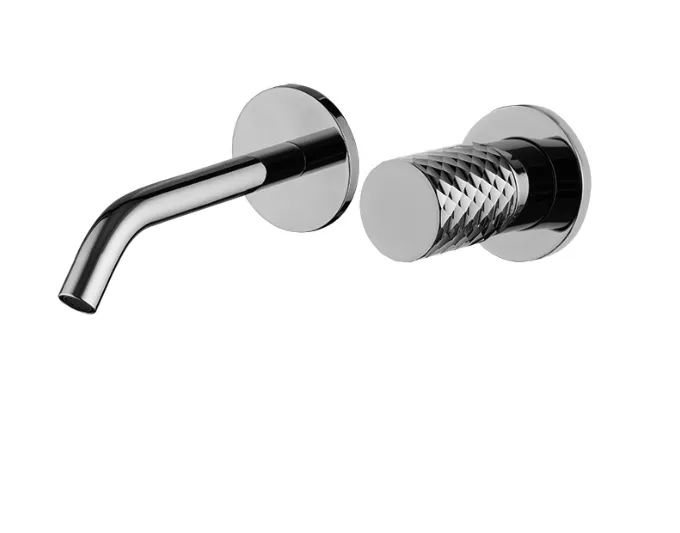 Смеситель для раковины, Fima Carlo Frattini, Spillo Tech, монтаж-настенный встраиваемый, отверстия для монтажа-2, высота, мм-70, вынос излива, мм-208, донный клапан-есть, click-clack 1``1/4, внутренняя часть-необходимо заказать, цвет-брашированный черный хром арт-F3051TWLX8VCS