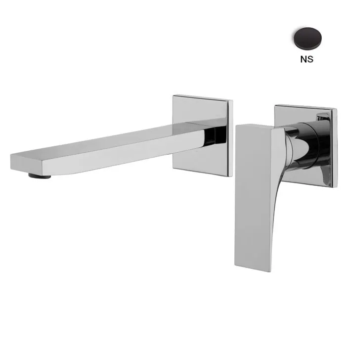 Смеситель для раковины, Fima Carlo Frattini, Zeta, тип открывания воды-однорычажный, монтаж-настенный встраиваемый, отверстия для монтажа-2, вынос излива, мм-154, донный клапан-есть, внутренняя часть-необходимо заказать, цвет-черный матовый арт-F3971NX8NS