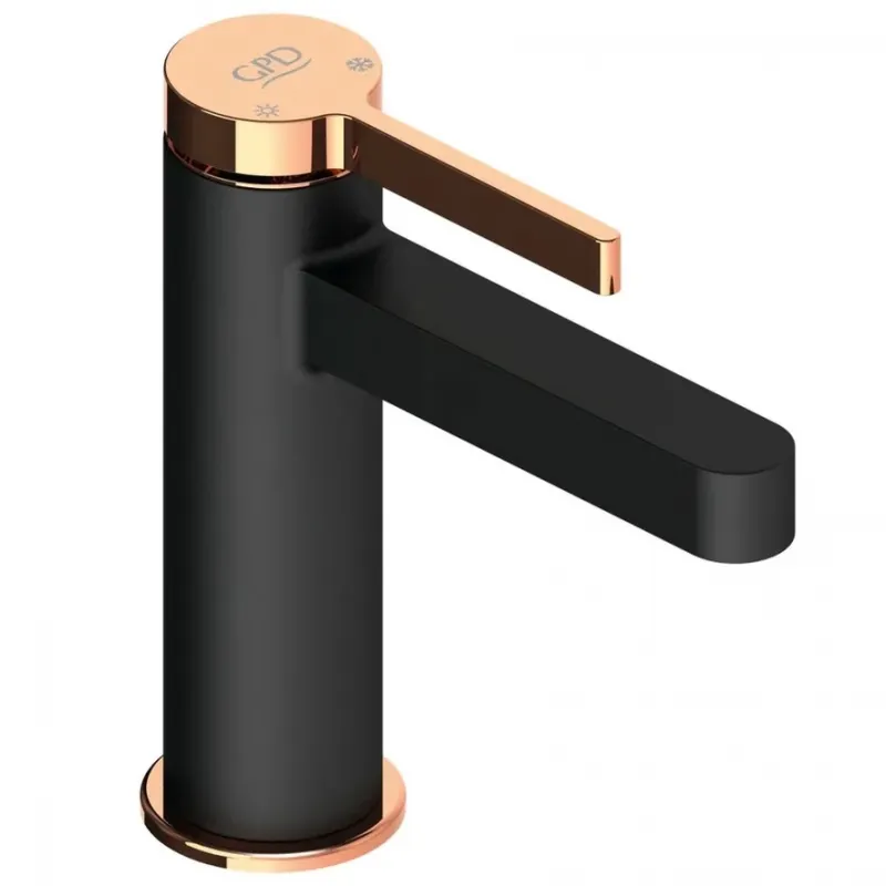 Смеситель для раковины GPD Gildo MLB165-S-R имеет свой неповторимый характер и отлично впишется в уникальный интерьер любой ванной комнатыТехнические данные: Цвет: черный матовый/розовое золото. Материал: латунь. Аэратор. Гибкая подводка 3/8. Вид управления: однорычажный. В комплекте поставки: Смеситель. Гибкая подводка.