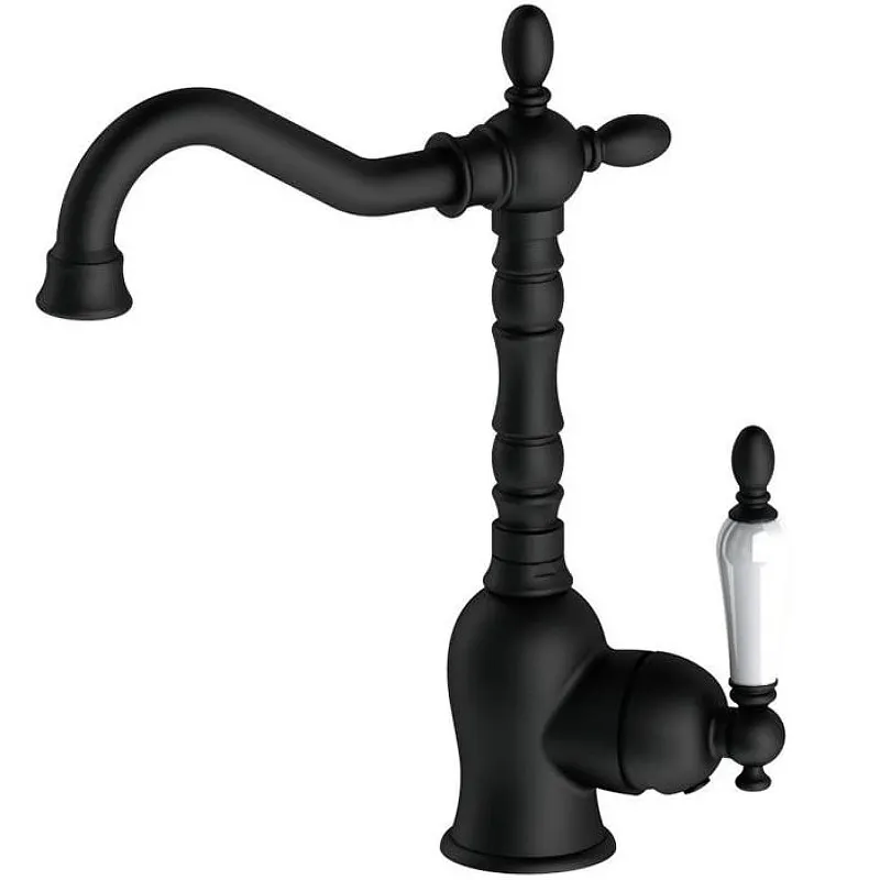 Смеситель для раковины GPD Retro Colored MTL180-S.Характеристики: Цвет: черный матовый. Материал: латунь. Покрытие: PVD. Керамическая ручка белого цвета. Управление: однорычажное. Механизм: керамический картридж 35 мм. Излив: поворотный. Водосберегающий аэратор. Расход воды 8 л/мин. Рабочее давление 3-4 бар. Антиизвестковое покрытие. Совместим с проточным водонагревателем. Стандарт подводки: 1/2. Тип подводки: гибкая. Отверстия для монтажа: 1. Монтаж: на раковину / на столешницу. В комплекте поставки: Смеситель для раковины. Гибкая подводка. Комплект креплений.