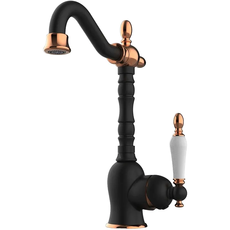 Смеситель для раковины GPD Retro Colored MTL180-S-R.Характеристики: Цвет: черный матовый, розовое золото. Материал: латунь. Покрытие: PVD. Керамическая ручка белого цвета. Управление: однорычажное. Механизм: керамический картридж 35 мм. Излив: поворотный. Водосберегающий аэратор. Расход воды 8 л/мин. Рабочее давление 3-4 бар. Антиизвестковое покрытие. Совместим с проточным водонагревателем. Стандарт подводки: 1/2. Тип подводки: гибкая. Отверстия для монтажа: 1. Монтаж: на раковину / на столешницу. В комплекте поставки: Смеситель для раковины. Гибкая подводка. Комплект креплений.