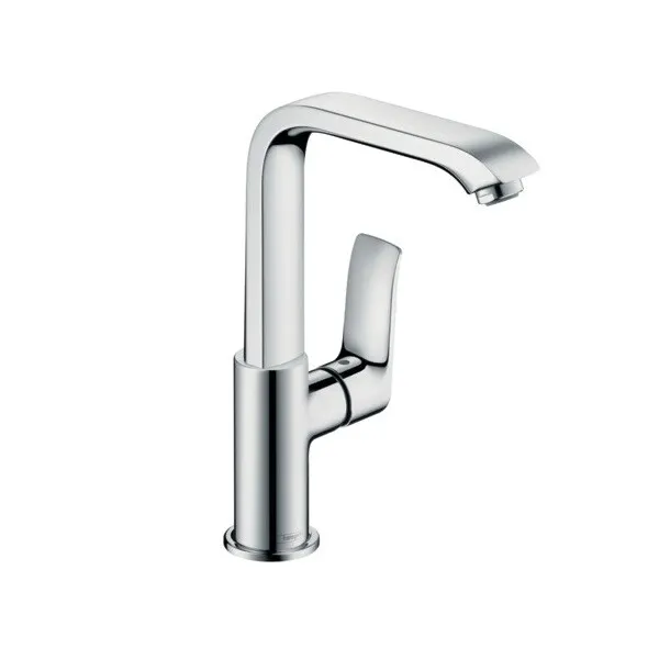 Смеситель для раковины, Hansgrohe, Metris, тип открывания воды-однорычажный, тип регулирования воды-керамический узел смешивания, вынос излива, мм-155, тип излива-поворотный, цвет-хром, без сливного гарнитура арт-31081000