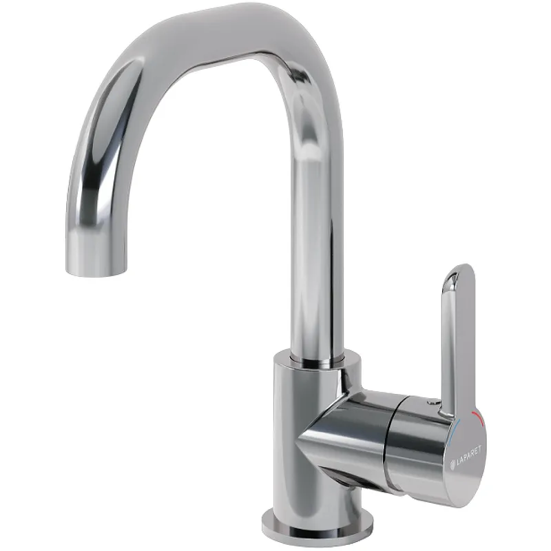 Смеситель для раковины Laparet Legna Plus N4013302LPT.Характеристики: Цвет: хром. Материал: латунь. Механизм: керамический картридж. Управление: однорычажное. Излив: фиксированный. Аэратор. Расход воды: 5 л/мин. Функция экономии расхода воды. Стандарт подводки: G1/2. Тип подводки: гибкая. Отверстий для монтажа: 1. Монтаж: на раковину/на столешницу. В комплекте поставки: Смеситель для раковины. Гибкая подводка. Ключ аэратора. Крепления.
