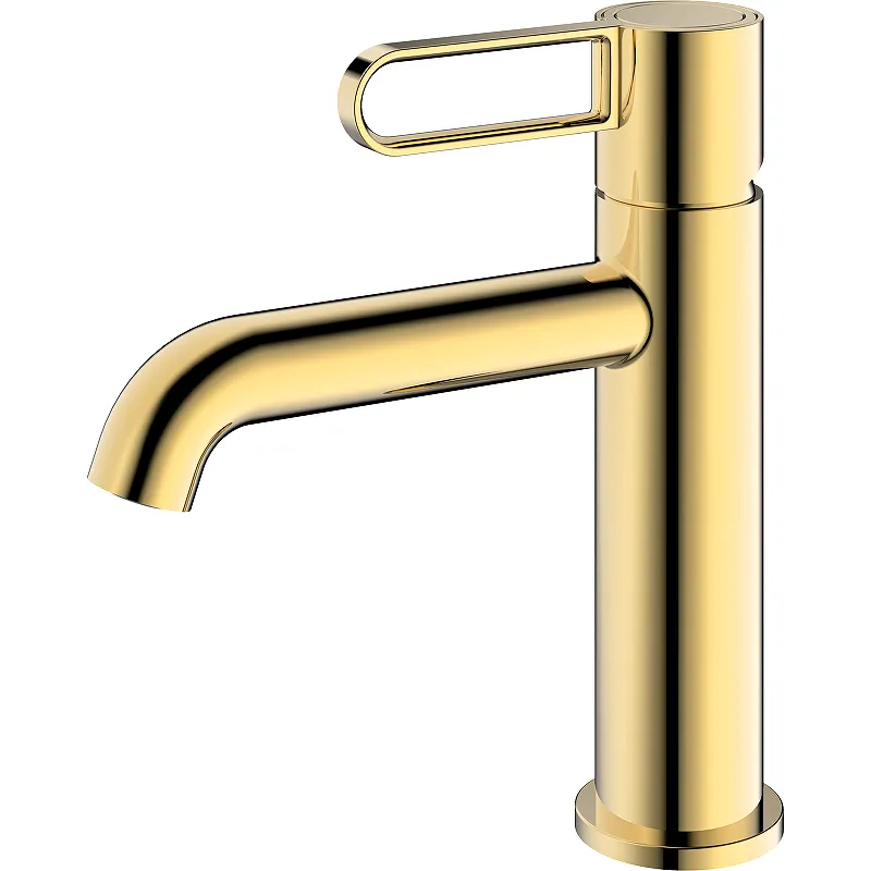 Смеситель для раковины Splenka S03.10.23.Характеристики: Цвет: золото. Материал: латунь. Управление: однорычажное. Механизм: керамический картридж. Излив: фиксированный. Стандарт подводки: G 1/2. Тип подводки: гибкая. Аэратор. Монтаж: на раковину. В комплекте поставки: Смеситель для раковины. Гибкая подводка. Аэратор. Комплект креплений.
