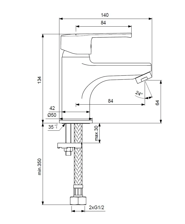 VIDIMA UNO Смеситель для умывальника, система монтажа EASY-FIX (облегченный монтаж), литой излив 104 мм, аэратор Perlator, керамический картридж 35 мм, металлическая рукоятка с индикаторами горячей / холодной воды, гибкая подводка G1/2", шланги стандартной длины 400 мм, без донного клапана