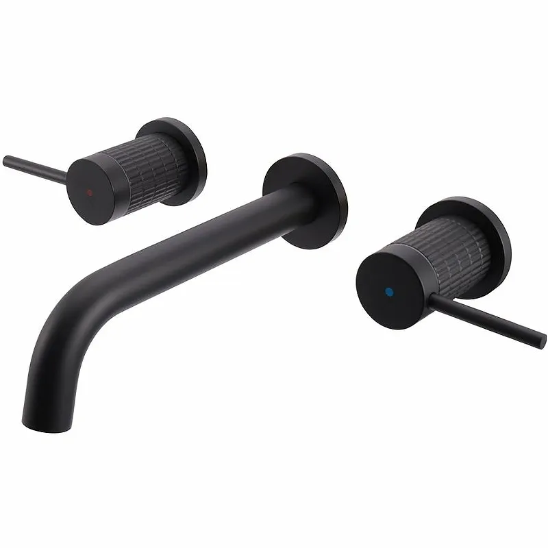 Смеситель для раковины Vincea Groove VBFW-4G1MB.Характеристики: Цвет: черный матовый. Материал: латунь. Управление: двухвентильное. Механизм: керамическая кран-букса. Излив: фиксированный. Аэратор. Стандарт подводки: 1/2. Количество монтажных отверстий: 3. Монтаж: встраиваемый. В комплекте поставки: Смеситель (внешняя и внутренняя часть).