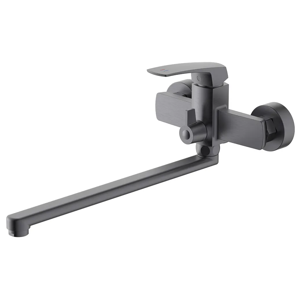 Смеситель для ванны Azario Conda керамический картридж, длинный излив, с ручным душем, шланг 150 см, графит арт-AZ-K1711GR