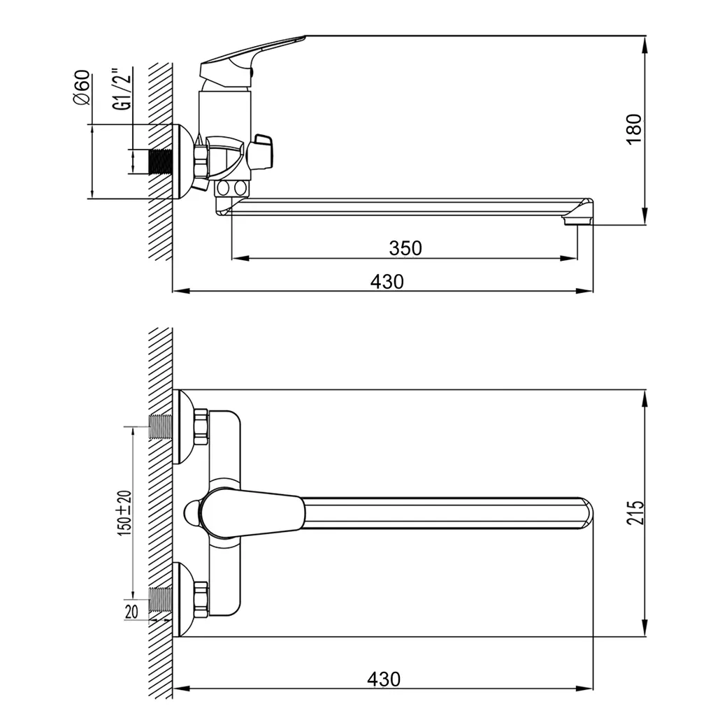 Смеситель для ванны Azario длинный излив, керамический картридж, хром арт-AZ-HU245912
