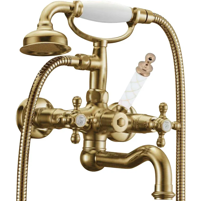 Смеситель для ванны Boheme Medici Presente 313-MR-W с душевым гарнитуром.Характеристики: Цвет: бронза. Материал: латунь. Ручка: стекло Murano, цвет белый. Управление: двухвентильное. Механизм: керамическая кран-букса. Излив: поворотный. Стандарт подводки: G 1/2. Тип подводки: жесткая. Аэратор. Количество режимов струи ручного душа: 1. Длина душевого шланга: 1500 мм. Монтаж: на стену. В комплекте поставки: Смеситель для ванны. Ручной душ. Душевой шланг. Держатель ручного душа. Комплект эксцентриков. Комплект креплений.