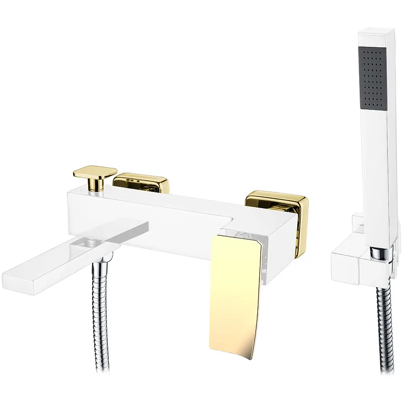 Смеситель для ванны Boheme Q 143-CRG.2 с душевым гарнитуром.Характеристики: Цвет: хром, золото. Материал: латунь. Управление: однорычажное. Механизм: керамический картридж. Излив: поворотный. Стандарт подводки: G 1/2. Тип подводки: жесткая. Аэратор. Встроенный девиатор: автоматически переключающий поток с душа на излив при закрытии воды. Функция экономии расхода воды. Количество режимов струи ручного душа: 1. Длина душевого шланга: 1500 мм. Монтаж: на стену. В комплекте поставки: Смеситель для ванны. Ручной душ. Душевой шланг. Держатель ручного душа. Комплект эксцентриков. Комплект креплений.