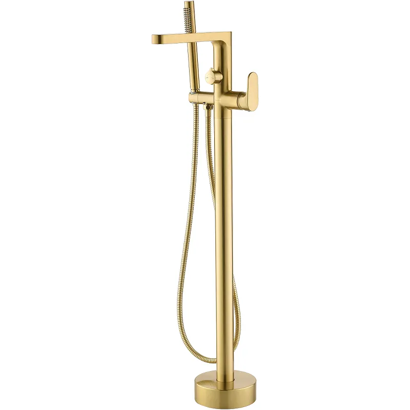 Смеситель для ванны Boheme Spectre 459-MG напольный.Характеристики: Цвет: золото матовое. Материал: латунь. Управление: однорычажное. Механизм: керамический картридж. Излив: фиксированный. Аэратор. Количество режимов струи ручного душа: 1. Длина душевого шланга: 1500 мм. Стандарт подводки: 1/2. Монтаж: напольный. В комплекте поставки: Смеситель (внешняя и внутренняя часть). Ручной душ. Душевой шланг. Держатель для ручного душа. Комплект креплений.