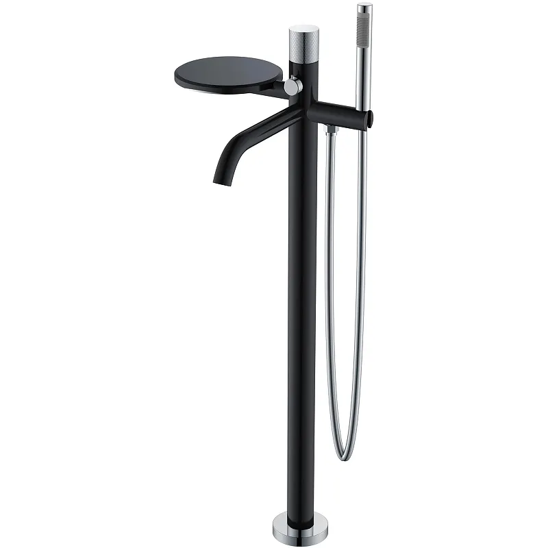 Смеситель для ванны Boheme Stick 129-BCR.2 с душевым гарнитуром.Характеристики: Цвет: черный матовый, хром. Ручка: Touch. Материал: латунь. Управление: однорычажное. Механизм: керамический картридж. Излив: фиксированный. Стандарт подводки: G 1/2. Количество режимов струи ручного душа: 1. Монтаж: на пол. В комплекте поставки: Смеситель для ванны. Ручной душ. Душевой шланг. Держатель ручного душа. Полочка. Комплект креплений.