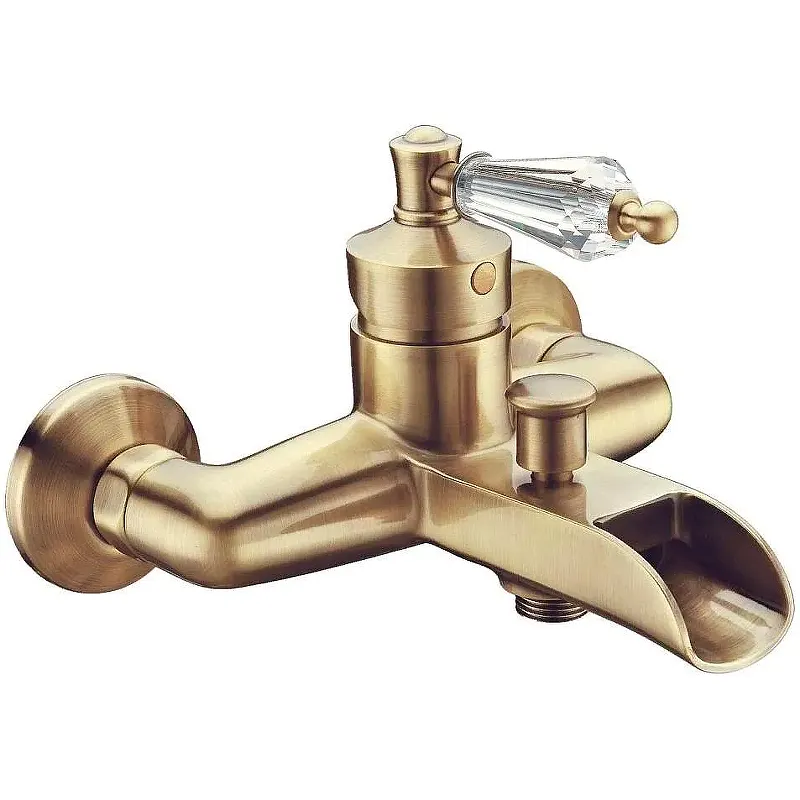 Смеситель для ванны Boheme Vogue 203-SW.Характеристики: Цвет: бронза. Ручка: кристалл Swarovski. Материал: латунь. Управление: рычажное. Механизм: керамический картридж. Излив: фиксированный, каскадный. Стандарт подводки: G 1/2. Тип подводки: жесткая. Девиатор. Эксцентрики. Монтаж: на стену. В комплекте поставки: Смеситель для ванны. Крепежный комплект.