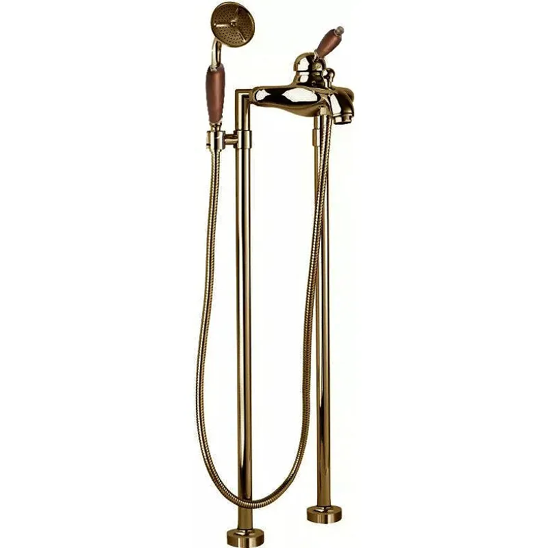 Смеситель для ванны Cezares Elite ELITE-VDPM-02-Nc напольный с душевым гарнитуром.Характеристики: Цвет: бронза. Цвет ручки: орех. Материал: латунь. Управление: однорычажное. Механизм: керамический картридж. Излив: фиксированный. Аэратор. Дивертор. Количество режимов струи ручного душа: 1. Стандарт подключения: G 1/2. Рабочий интервал давления в водопроводной сети: 0.5-6.0 Атм. Отверстия для монтажа: 2. Монтаж: напольный. В комплекте поставки: Смеситель. Ручной душ. Душевой шланг. Универсальный установочный комплект с держателем ручного душа.