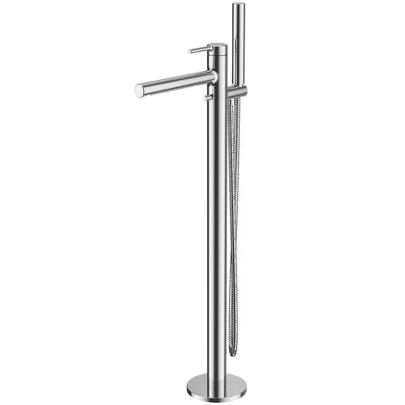 Смеситель для ванны Excellent Pi Arex AREX.1255CR напольный.Характеристики: Цвет: хром. Материал: латунь. Поверхность: глянцевая. Фиксированный излив. Механизм: керамический картридж. Управление: однорычажное. Стандарт подводки: G 1/2. Длина шланга: 150 см. Ручной душ с одним режимом. Монтаж: на пол.В комплекте поставки: Смеситель. Внутренняя часть. Керамический картридж. Гибкая подводка G 1/2. Ручной душ. Душевой шланг.