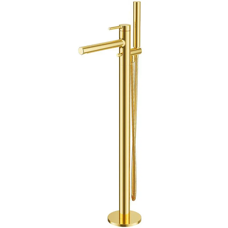 Смеситель для ванны Excellent Pi Arex AREX.1255GL напольный.Характеристики: Цвет: золото. Материал: латунь. Поверхность: глянцевая. Фиксированный излив. Механизм: керамический картридж. Управление: однорычажное. Стандарт подводки: G 1/2. Длина шланга: 150 см. Ручной душ с одним режимом. Монтаж: на пол.В комплекте поставки: смеситель, ручной душ, душевой шланг, гибкая подводка G 1/2.