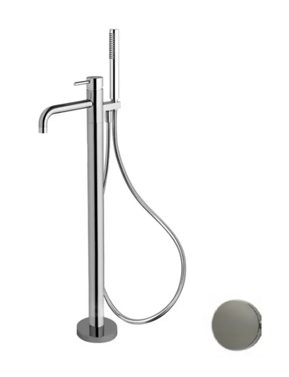 Смеситель для ванны, Fima Carlo Frattini, Spillo Up, тип открывания воды-однорычажный, монтаж-напольный, отверстия для монтажа-1, вынос излива, мм-254, в комплекте-ручной душ, шланг,мм-1500, внутренняя часть-необходимо заказать, цвет-брашированный никель арт-F3034/6NSN