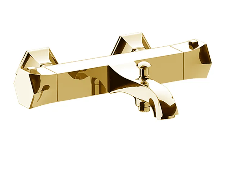 Смеситель для ванны и душа, Cisal, Chérie, тип регулирования воды-термостатический картридж, тип установки-настенный, отверстия для монтажа-2, вынос излива, мм-224, цвет-Gold арт-CET2701024
