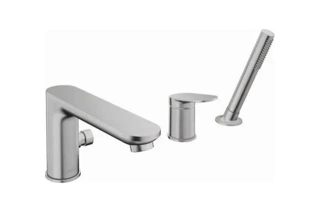 Смеситель для ванны и душа, Duravit, Wave, тип открывания воды-однорычажный, тип регулирования воды-керамический картридж, монтаж-на борт ванны, отверстия для монтажа-3, вынос излива, мм-200, ручной душ-в комплекте, цвет-нержавеющая сталь