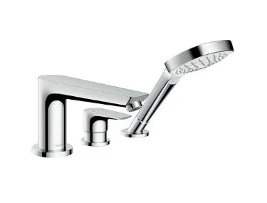 Смеситель для ванны и душа, Hansgrohe, Talis E, тип открывания воды-однорычажный, тип регулирования воды-керамический картридж, тип установки-на борт ванны, отверстия для монтажа-3, вынос излива, мм-196, комплектация-переключатель, ручной душ, внутренняя часть-необходимо заказать, цвет-хром арт-71730000