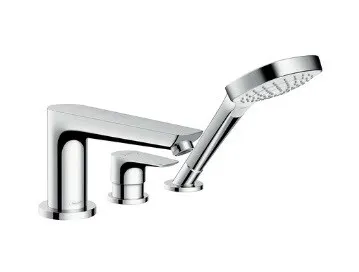 Смеситель для ванны и душа, Hansgrohe, Talis E, тип открывания воды-однорычажный, тип регулирования воды-керамический узел смешивания, тип установки-на борт ванны, отверстия для монтажа-3, вынос излива, мм-196, комплектация-переключатель, ручной душ, внутренняя часть-необходимо заказать, цвет-хром арт-71731000