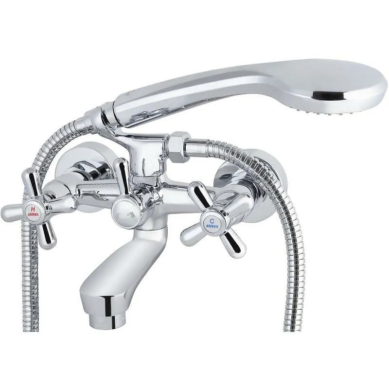 Смеситель для ванны с душем Kaiser Carlson 11044 с душевым гарнитуром.Характеристики: Цвет: хром. Материал: латунь. Материал ручного душа: пластик. Управление: двухвентильное. Механизм: керамическая кран-букса. Излив: поворотный. Аэратор. Дивертор: шаровый. Количество режимов струи ручного душа: 3. Отверстия для монтажа: 2. Стандарт подводки: 1/2. Монтаж: на стену. В комплекте поставки: Смеситель для ванны. Душевой шланг. Душевая лейка. Эксцентрики. Отражатели.