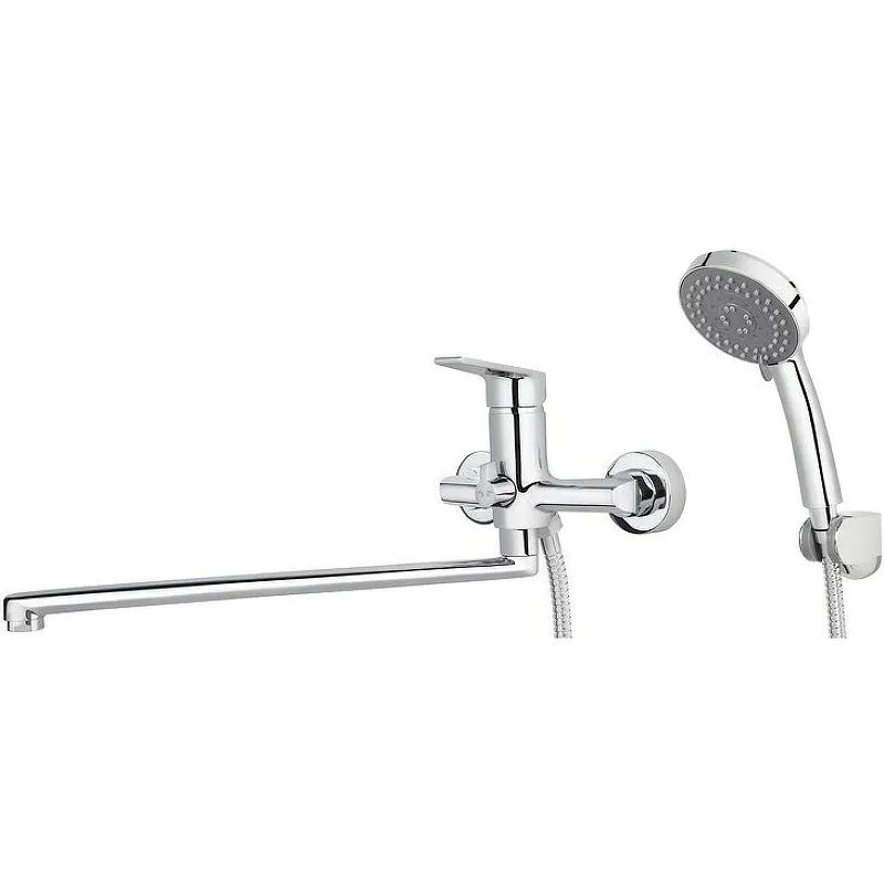 Смеситель для ванны Kaiser Eco 00055 универсальный с душевым гарнитуром.Характеристики: Цвет: хром. Материал: латунь. Управление: однорычажное. Механизм: керамический картридж 35 мм. Излив: поворотный. Дивертор: встроенный, керамический. Аэратор. Размер ручного душа (ШхВ): 100x220 мм. Количество режимов струи ручного душа: 5. Длина шланга: 1.5 м. Отверстия для монтажа: 2. Стандарт подводки: 1/2. Монтаж: на стену. В комплекте поставки: Смеситель для ванны. Душевой шланг. Ручной душ. Держатель ручного душа. Отражатели. Эксцентрики. Комплект креплений.