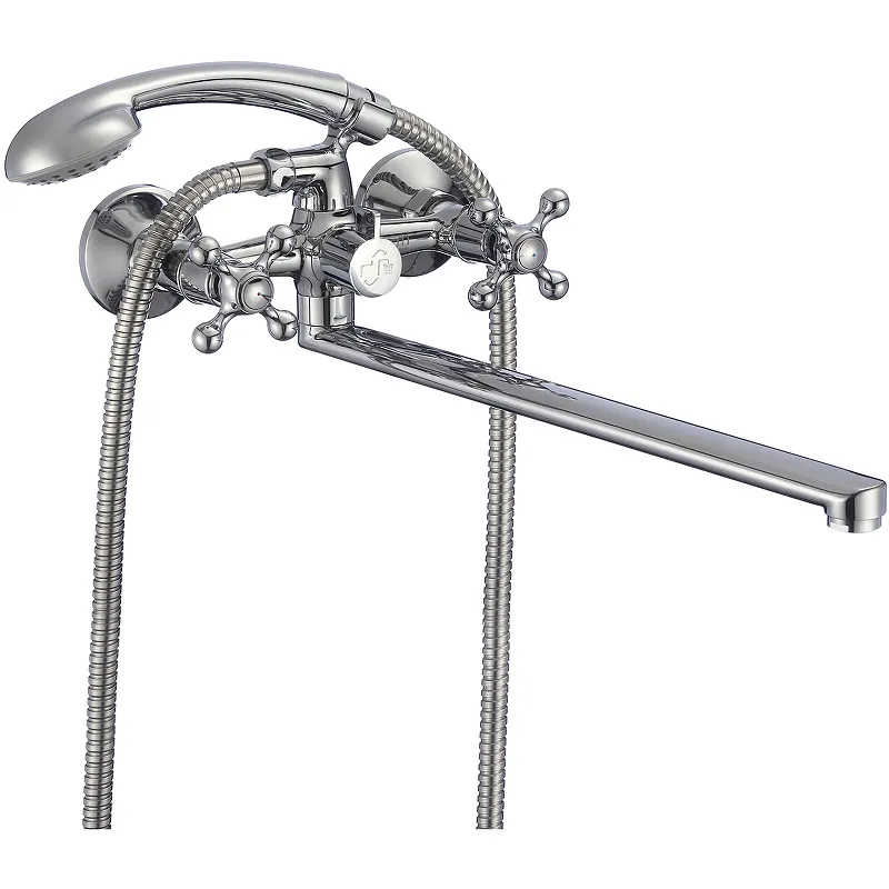 Смеситель для ванны Milardo с двумя вентилями и хромированным покрытием станет отличным выбором для современного интерьера вашей ванной комнаты. Он не только удобен в использовании, но и обеспечивает точную регулировку температуры и напора воды благодаря крестообразным ручкам.