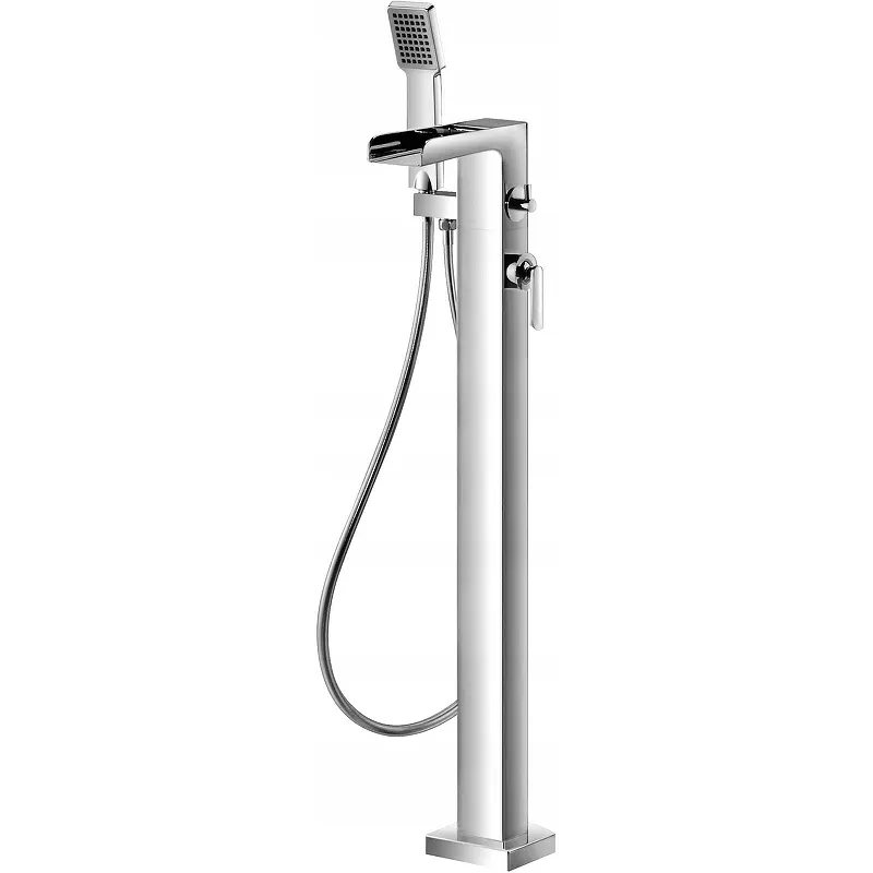 Смеситель для ванны Omnires Cascade CA4033CR напольный, с душевым гарнитуром.Характеристики: Цвет: хром. Материал: латунь. Излив: фиксированный. Тип излива: каскадный. Ручной душ из латуни с 1 режимом струи. Держатель для ручного душа с защитным вкладышем. Душевой шланг длиной 150 см. Монтаж: напольный. В комплекте поставки: Смеситель для ванны (внешняя и внутренняя часть). Ручной душ. Душевой шланг.