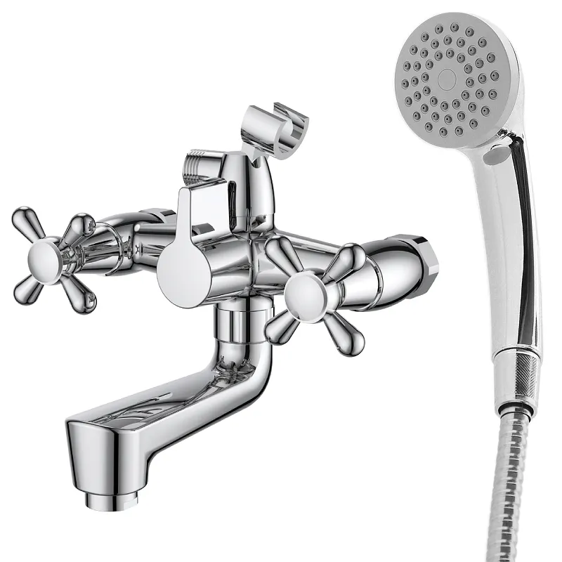 Смеситель для ванны Orange OneLife P03-231cr полимерный двухвентильный.Характеристики: Материал: высокопрочный полимер, рассчитанный на 510 000 циклов и 53 АТМ без замены. Материал корпуса стоек к коррозии, окислению и отрицательным температурам, а также гарантирует отсутствие риска обжечься при касании. Цвет: хром. Поворотный излив с аэратором, обеспечивающим мягкую, без брызг, струю. Тип управления: вентильное. Стандарт подводки: 1/2. Ручной душ с 1-м режимом и функцией легкого очищения форсунок от известкового налета. Душевой шланг 150 см с защитой от перекручивания. Монтаж: на стену. В комплекте поставки: Смеситель. Душевая лейка. Душевой шланг. Отражатели. Эксцентрики.