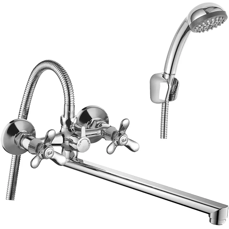 Смеситель для ванны Rossinka Q02-80 универсальный с хромированным покрытием идеально подходит для стильных и функциональных ванных комнат. Это двухвентильное устройство обеспечивает простое управление потоком воды и добавляет изысканности вашему интерьеру благодаря ретро-дизайну.