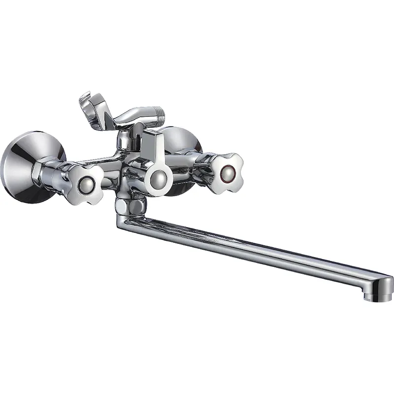 Смеситель для ванны Ростовская Мануфактура Сантехники SL116-140 универсальный.Характеристики: Цвет: хром. Материал: цинковый сплав. Управление: двухвентильное. Излив: длинный поворотный. Переключатель ванна/душ: картриджный. Механизм работы: кран-букса латунная с керамическими пластинами, угол поворота 180 градусов. Металлический шланг для душа 1,5 метра. Аэратор: пластиковый. Монтаж: на стену. В комплекте поставки: Смеситель. Шланг для душа. Ручной душ. Эксцентрики. Отражатели.