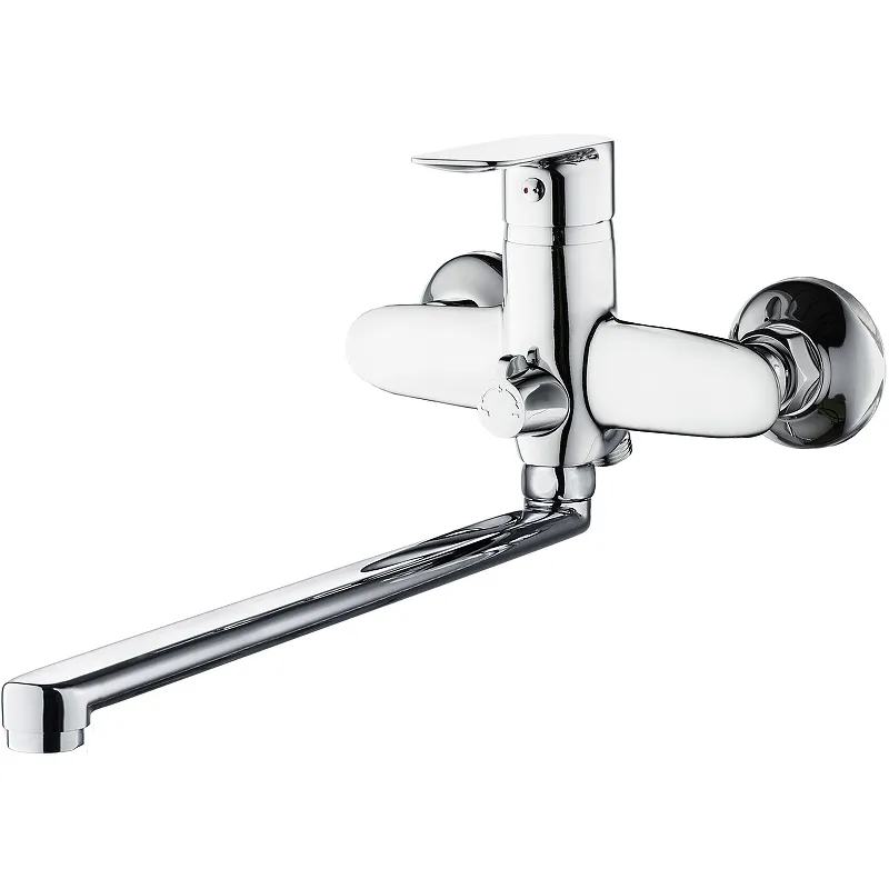 Смеситель для ванны Ростовская Мануфактура Сантехники SL133-006E.Характеристики: Цвет: хром. Материал: цинковый сплав. Однорычажный. Механизм: керамический картридж 35 мм. Евро-переключение на душ. Излив: поворотный. Стандарт подводки: G1/2. Отверстия для монтажа: 2. Монтаж: на стену. Аэратор. Длина шланга: 150 см. В комплекте поставки: Смеситель. Душевой шланг. Душевая лейка. Отражатели. Эксцентрики.