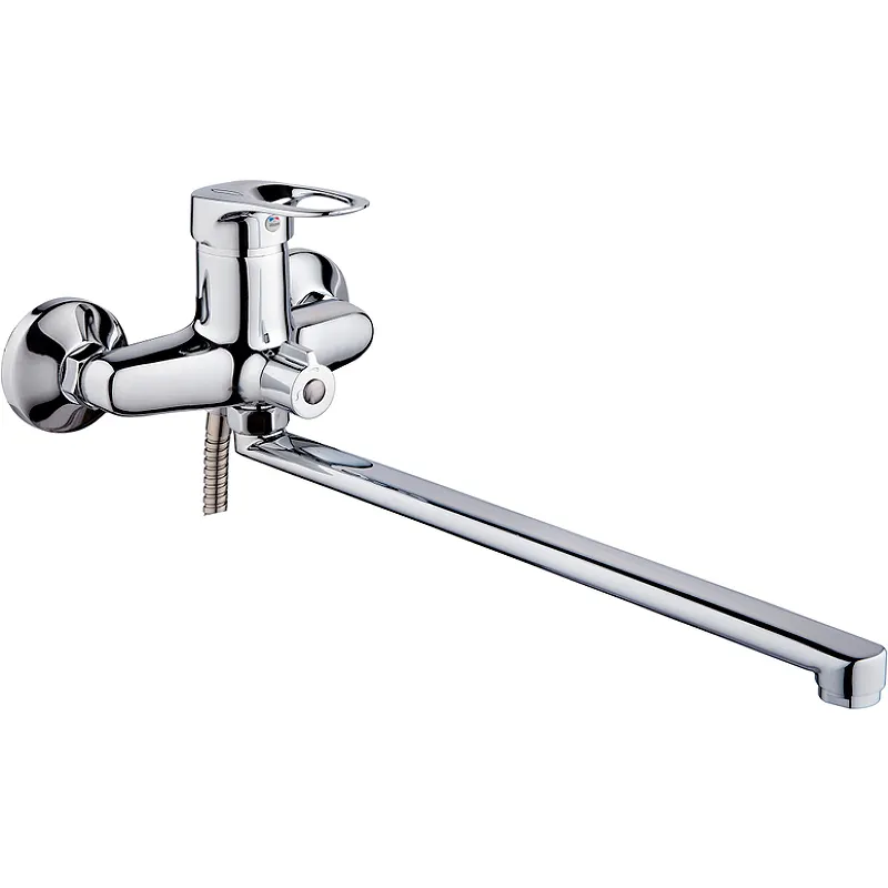 Смеситель для ванны Ростовская Мануфактура Сантехники SL55-006E универсальный.Характеристики: Цвет: хром. Материал: цинковый сплав. Управление: однорычажное. Излив: длинный поворотный прямой. Переключатель ванна/душ: евро-переключение. Механизм работы: керамический картридж, 40 мм. Аэратор: пластиковый. Монтаж: на стену. В комплекте поставки: Смеситель. Шланг. Ручной душ. Эксцентрики. Отражатели.