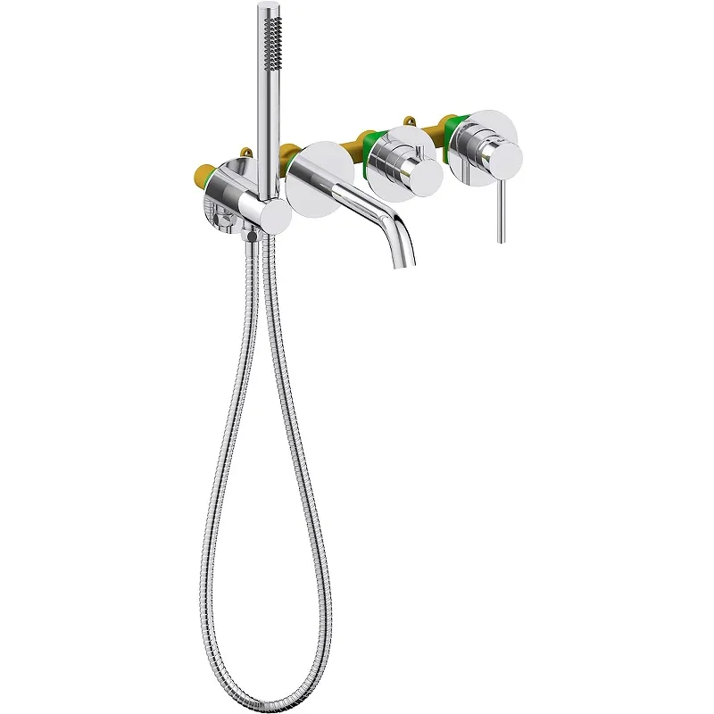 Смеситель для ванны Timo Saona 2314/00YSM.Характеристики: Цвет: хром. Материал: латунь. Поверхность: глянцевая. С фиксированным изливом. Механизм: керамический картридж 35 мм. Отверстия для монтажа: 4. Стандарт подключения: G 1/2. Количество режимов ручного душа: 1. Гибкий шланг 150 см. Монтаж: встраиваемый. В комплекте поставки: Смеситель (внешняя и внутренняя части). Излив встроенный (латунный). Блок управления режимами. Держатель ручной лейки встроенный с подключением шланга душа. Монтажный блок для подключения (латунь). Блок управления режимами. Ручная лейка (латунь). Шланг душа. Инструкция.