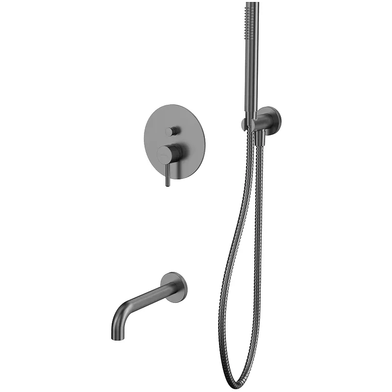 Смеситель для ванны Whitecross Y gunmetal YSET06GM с душевым гарнитуром.Характеристики: Цвет: оружейная сталь. Материал: латунь. Покрытие: PVD. Управление: однорычажное. Механизм: керамический картридж Kerox. Излив: фиксированный. Скрытый аэратор: Neoperl. Автоматический переключатель. Количество потребителей: 2. Два входа (для горячей и холодной воды) G 1/2. Два выхода смешанной воды G 1/2. Держатель ручного душа с пластиковой вставкой. Размер ручного душа (ШхВхД): 26х225х26 мм. Количество режимов струи ручного душа: 1. Пропускная способность при давлении 3 Бар: ручной душ - 13,5 л/мин / излив - 21 л/мин. Душевой шланг в металлической оплетке, длиной 1500 мм. Двусторонняя защита от скручивания. Отверстия для монтажа: 3. Монтаж: встраиваемый. В комплекте поставки: Смеситель (внешняя и внутренняя части) на 2 потребителя - Y1235GM. Излив Y1200GM. Ручной душ MICRO-GM. Душевой шланг SHS150GM. Шланговое подключение с держателем ручного душа Y1005GM.